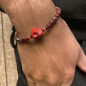 Red n Dark Grey Marble men bracelet with skull
